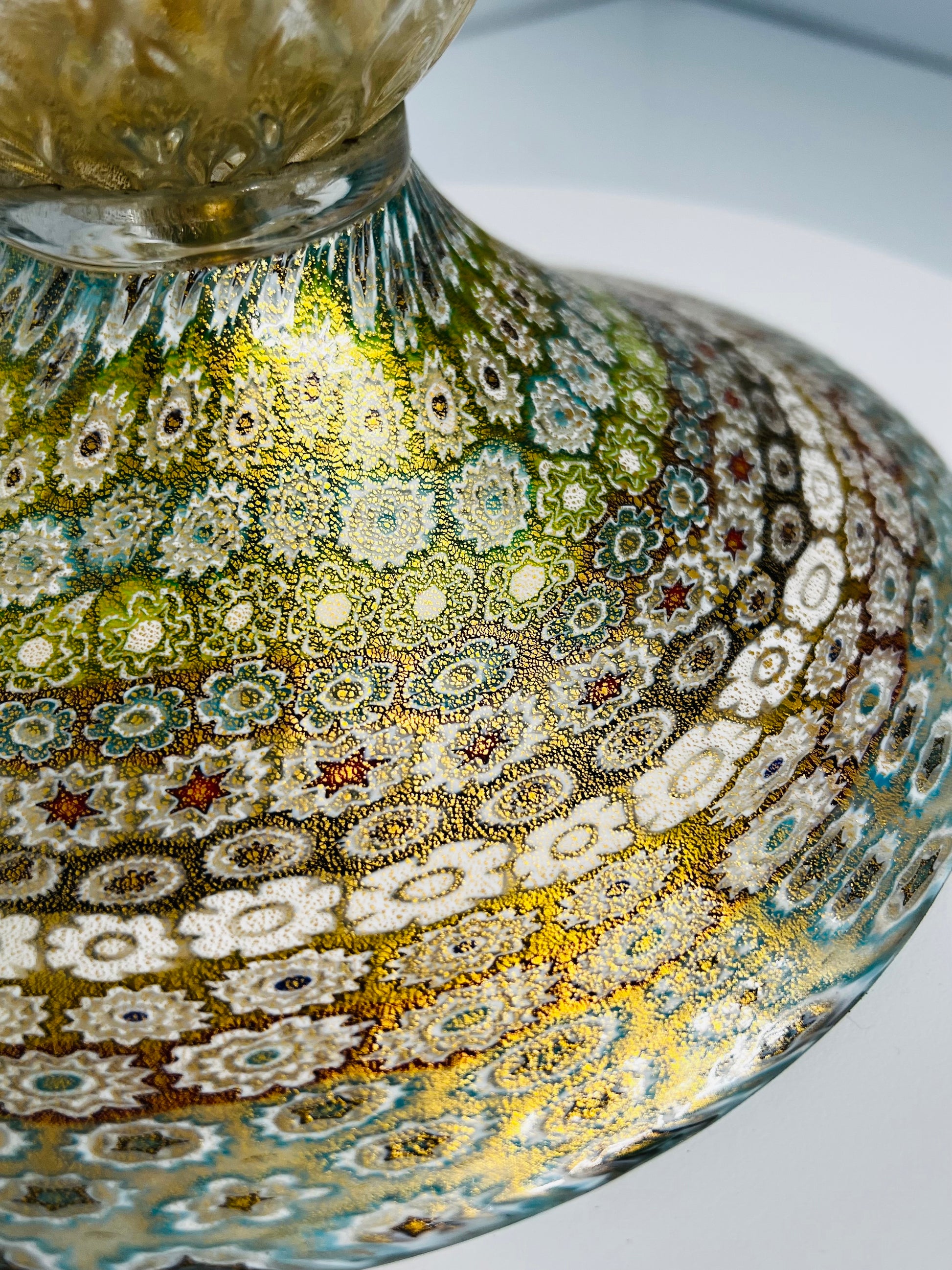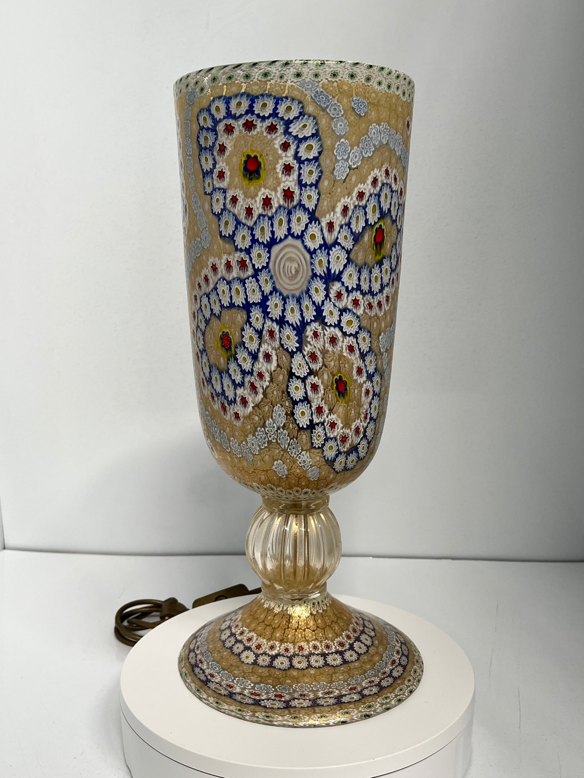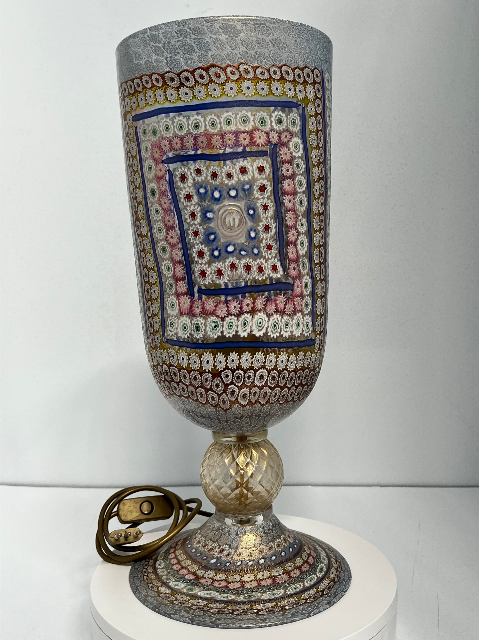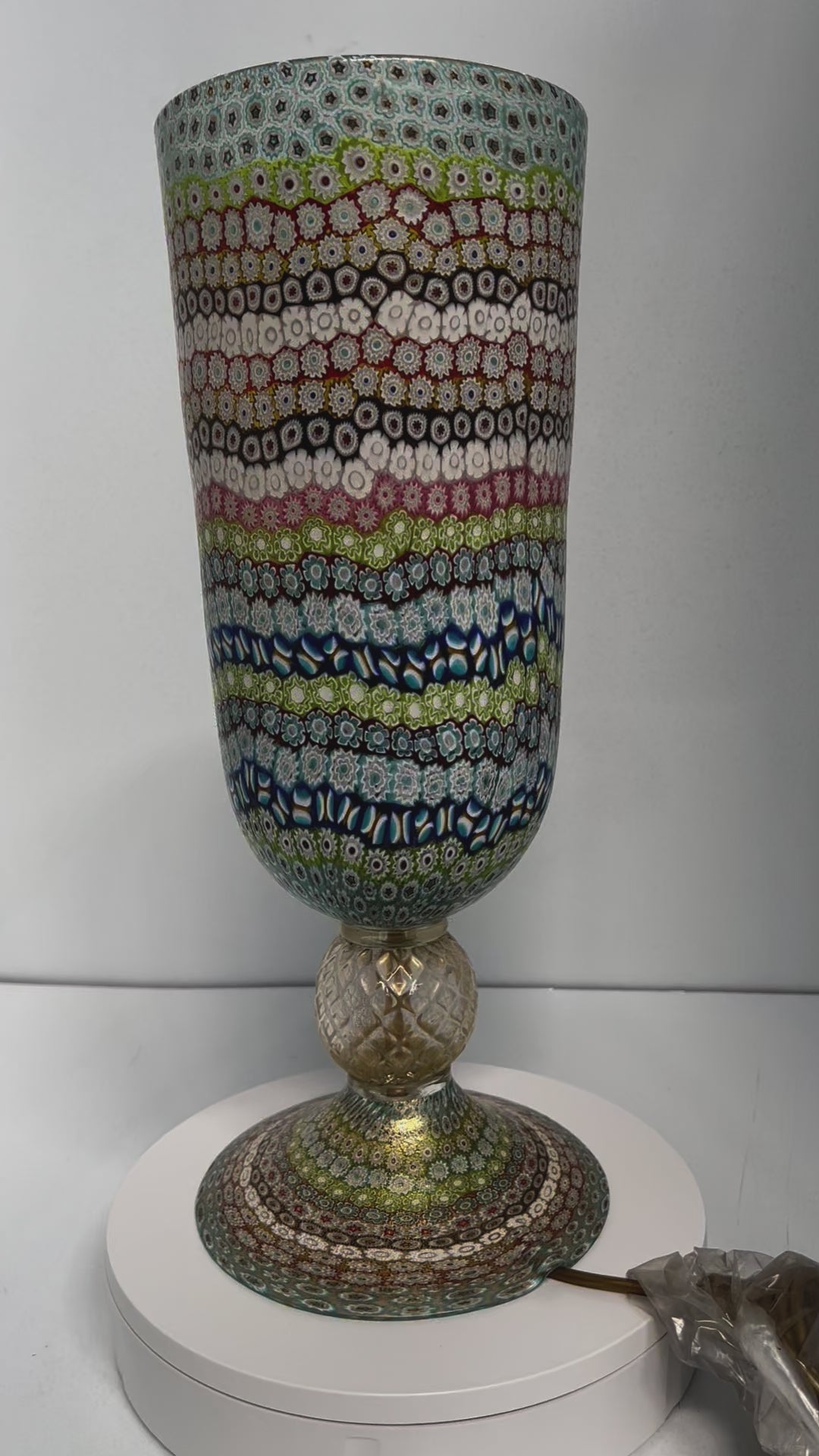 Realizzata a mano dai maestri vetrai di Murano, la lampada si distingue per le sue murrine policrome sapientemente incastonate nel vetro, che creano giochi di luce e riflessi unici. Il design a calice, iconico e raffinato, la rende perfetta per aggiungere un tocco di classe a qualsiasi ambiente, dal classico al contemporaneo.