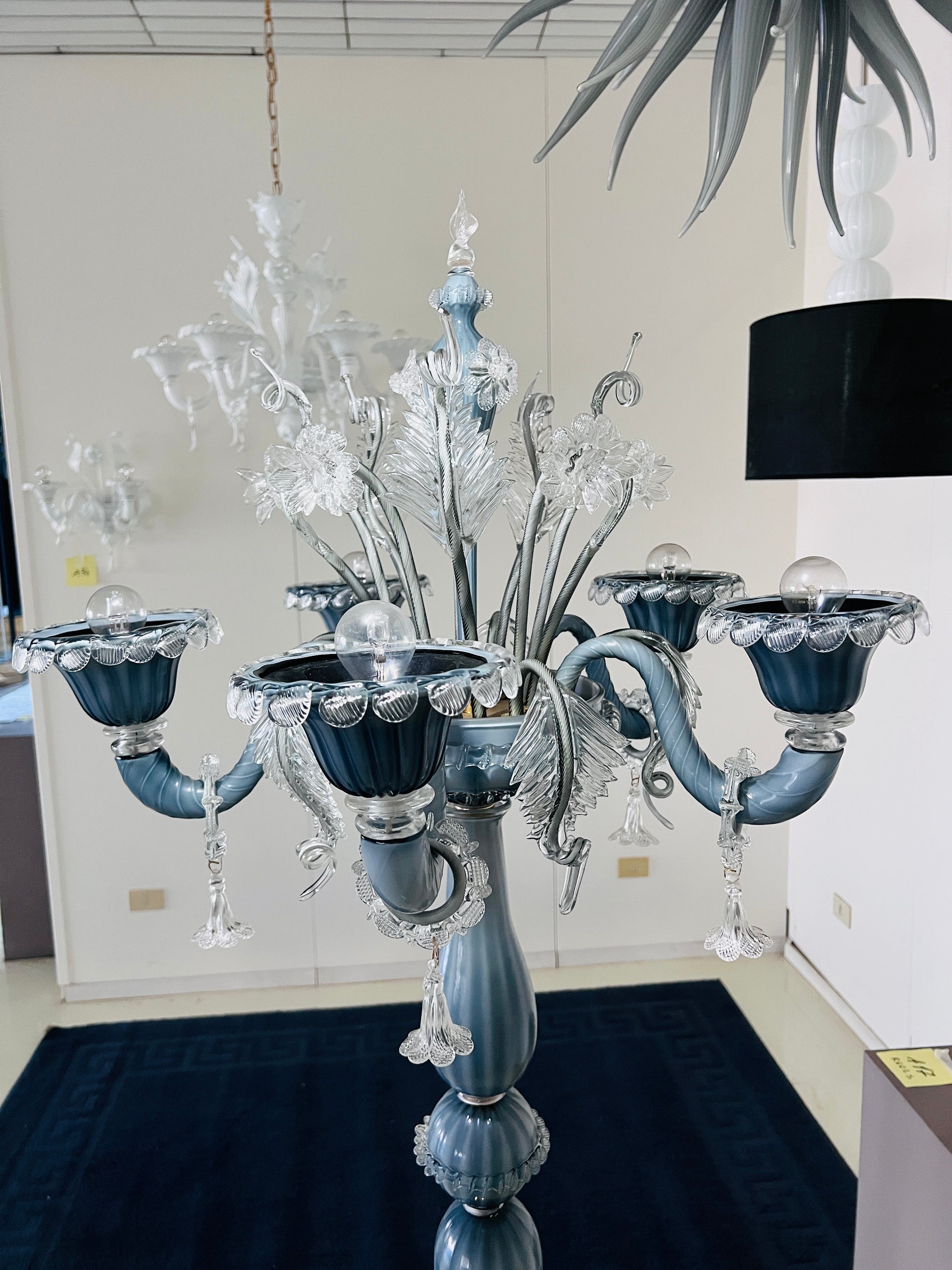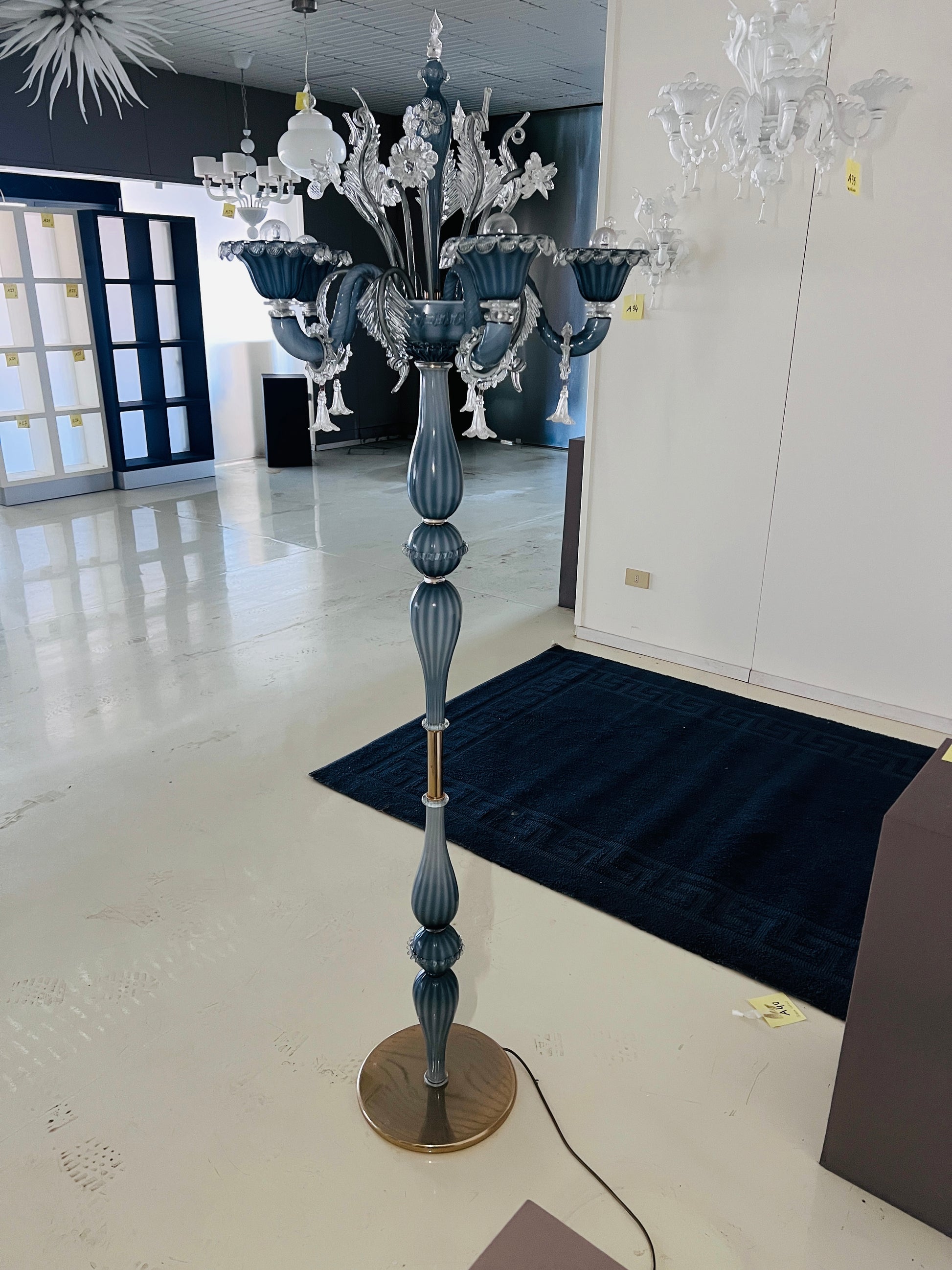 Stile Senza Tempo: Una reinterpretazione del classico lampadario veneziano, trasformato in una piantana da terra monumentale.